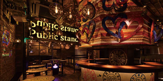 梅田阪急東通り店 | パブリックスタンド - お酒もスポーツも無制限に遊べるバー | バー・パブリックスタンド (The Public Stand)公式サイト | 独自の【飲み放題で出入り自由】なシステムで楽しみ方は無限大(LINE@に登録が必要です)。本格バーテンダーが目の前でつくるカクテルを楽しみながら、学生から社会人、カップルからお一人さままで、さまざまな交流が自然と生まれるパブリック空間を楽しみたい方はパブリックスタンドへ。<貸し切りパーティも受付中>お気軽にお問い合わせください。フリーwifi、フリーチャージ