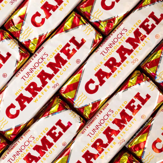 スコットランドの人たちのソウルフードとも言える、Tunnck's(タノックス)社のお菓子キャラメルワイファーです。ウエハースにチョコレートでコーティングしてあり、どこか懐かしい味のお菓子です。1890年から愛されているお菓子のブランドです。これを知らないスコットランド人はいないです!4本入りで150円ほどでスーパーでは買えます。