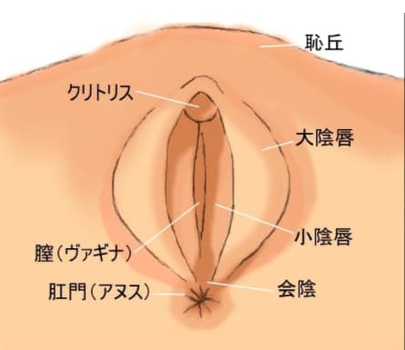 マンコはチンコを入れる女性の性器で、外から見るとビラビラの大陰唇と膣、クリトリスがあります。