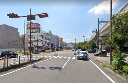 駅舎に沿って、西へ向かってください。