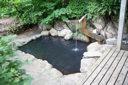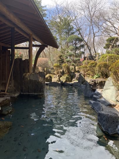 露天風呂自体は岩が置かれていてとても広くて、お湯は無色透明です。例え5名以上のかたが入浴していても、大胆に露出できる雰囲気ですよ。