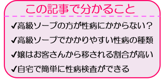 では、性病を徹底管理をしている傾向にある高級ソープで、何故性病にかかりやすくなるとも言えるのでしょうか。