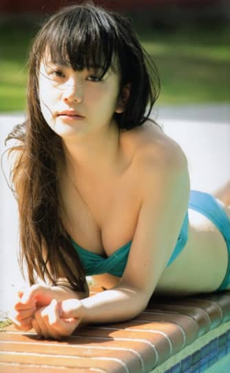 プールで泳ぎ疲れて、ちょっとプールサイドに上がって休憩をしているような雰囲気を私は感じてしてしまうのですが、この俯せの体勢の「松井愛莉」には私はやられてしまいそうです!