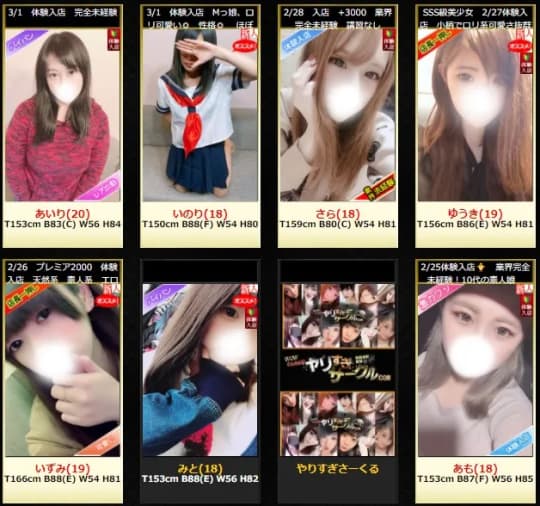 中でも広く知られているのはやりすぎサークルでしょう。やりすぎサークルは都内でいくつもの支店を持つ風俗グループで、ベテラン風俗ファンであれば誰もがご存知のはず!
