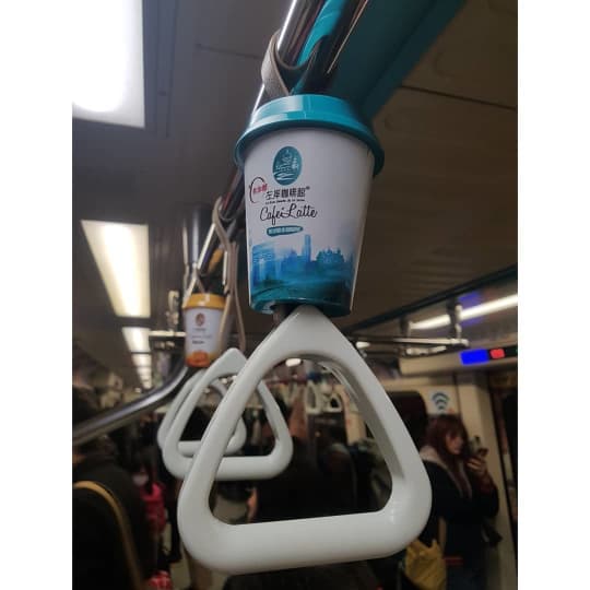 飲みかけのタピオカを持ったまま地下鉄に乗るときは、カップホルダーが便利です。