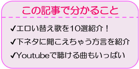 今回は日々エロい替え歌を検索しまくっているウサギウサオ厳選のエロい替え歌を10曲ご紹介していきます!