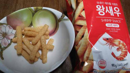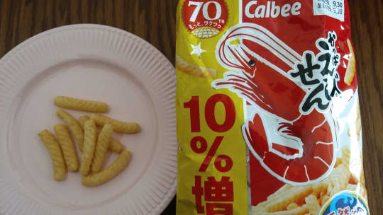 皆さんご存知の有名な日本のお菓子です。味は韓国の方が、最初にエビの味がします。日本の商品は、後からエビの味がします。韓国の商品は塩分が控え目で、日本の商品は塩分がやや多い感がします。日韓で食べ比べると面白いでしょう。