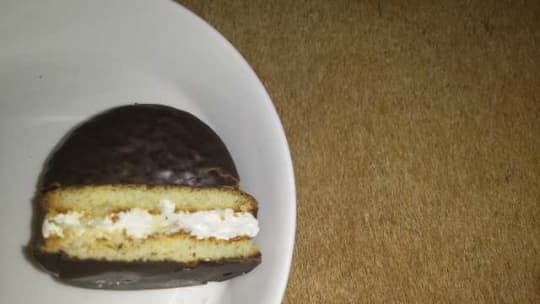 写真はオリオンの生クリームパイの中身です。意外にも、パッケージ通りに生クリームが沢山入っています。中身がパッケージ通りだったので驚きました。
