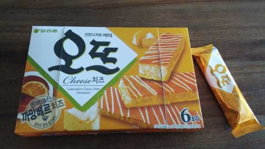 オリオンのオットーチーズ味も、日本では無名ですが美味しいお菓子です。韓国のお土産で、オリオンのオットーチーズ味をあげたら、恐らく多くの人は驚くと思います。ヨーロッパの味に近い味です、チーズの味も複雑な味がします。ケーキの部分もショコラ味同様にしっとりしています。あまり甘くないので、甘いものが得意でない人にもお勧めです。手作り高級菓子の味に近いのに、価格は6本入りで2200ウォン(約220円)でした。プレゼントとして渡しても、喜ばれるお菓子でしょう。