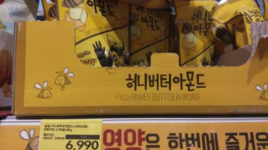 Tom'sのハニーバターアーモンド味は、日本人にとって定番の韓国の土産と言っても良いお菓子でしょう。味はパッケージ通りのハニーバター味で、韓国のお菓子に珍しい塩気がある商品です。中のアーモンドも大きく、少量でも意外に食べ応えがあります。この商品はアーモンドの粒なので、歯が悪い人や高齢者と幼児は注意が必要です。韓国では健康を気にする、50代以上の女性がよく購入しています。この時の価格は6990ウォン(約699円)でした。この写真はもう1つ貰える1+1(ワンプラスワン)の写真です、1+1(ワンプラスワン)という表示は必ず注意して見て下さい、かなりお得になります。