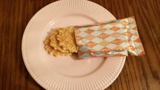 ロッテのワッフルメイトハニーソフトの中身は外箱に描かれた写真より、実際はもっとおしゃれで、上品な感じのお菓子です。形が綺麗なお菓子なので、韓国のお土産としてインスタにアップしたくなるお菓子です。