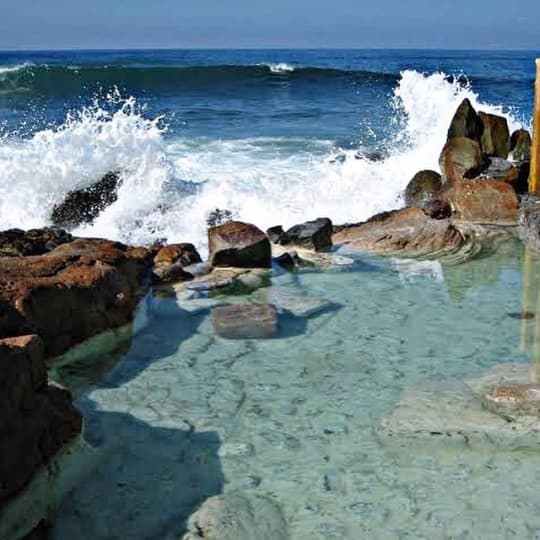 ド迫力の、時には穏やかな太平洋を洞窟から眺めながら入浴できます。