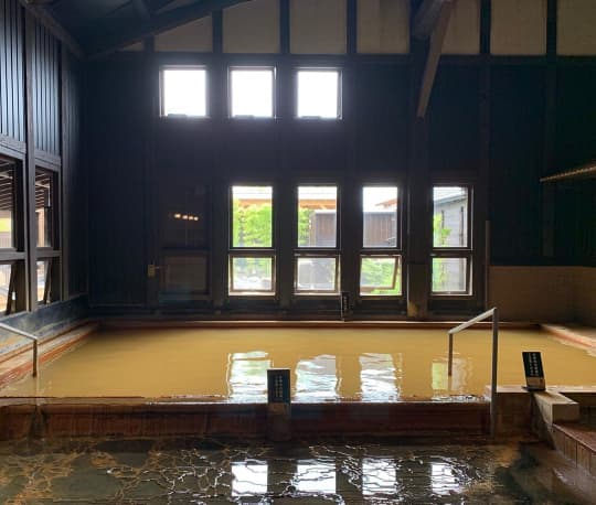 泉質はナトリウム・カルシウムー塩化物泉。塩気のある温まる温泉です。