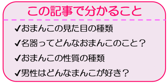 今回は、色々とうわさのあるまんこの種類について、丁寧に解説をしていきます。