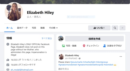 エリザベス・ハイリー母は、Facebookを開始!