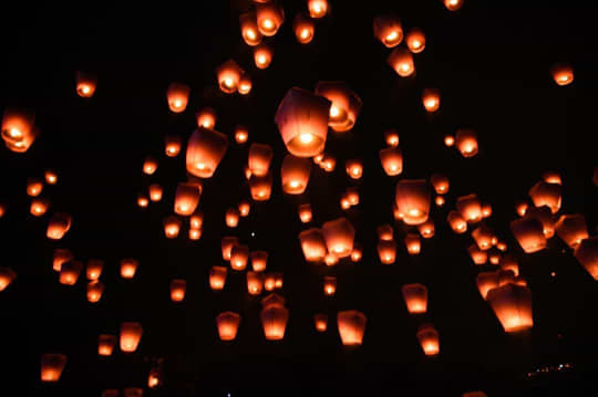 幾千ものランタンに願い事を記し、火をともして空へ飛ばすのです。