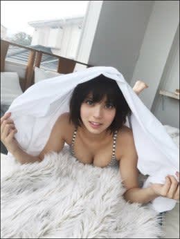 うつぶせで白いシーツをかぶって、はしゃいでる感じが楽しそうな「吉崎綾」。