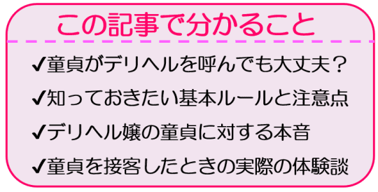 童貞の皆さんが口を揃えて言っていたのも「童貞なんだけどデリヘルで遊ぶのって大丈夫なのか?」ということ。