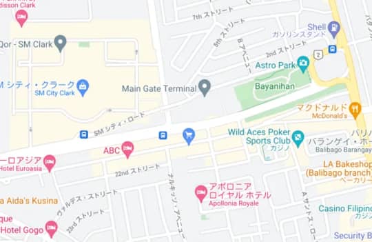 ※マニラのニノイ・アキノ空港からアンヘレスまでの直行バスではSMクラークが停留所になっています。