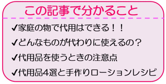 こんな時にローションの代用品があれば、かなり便利ですよね?実は、家庭にあるもので代用ができちゃうんですよ!!