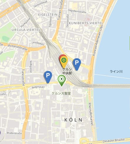 ■ 行き方:ケルン中央駅から徒歩5分程度、ケルン大聖堂の南側を南下。詳細は下記地図参考