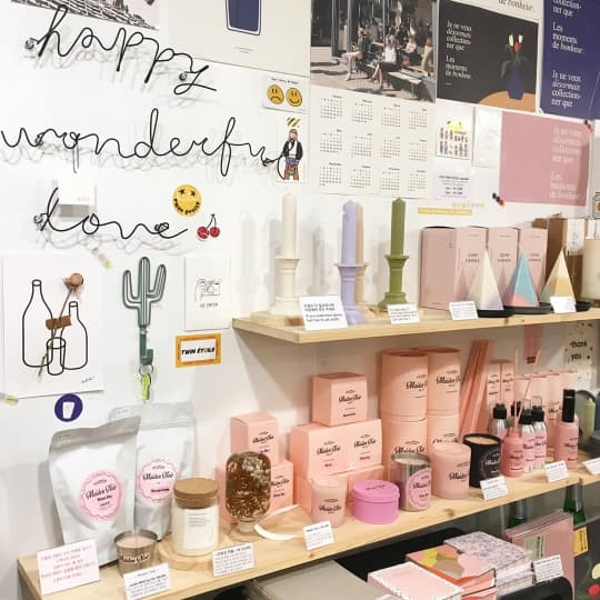 特にキャンドルの種類が多く、形やカラーも色々とあって目移りします。もちろんデザイナー、クリエイターのブランドも扱っているので韓国ならではの雑貨が見つかると思います。