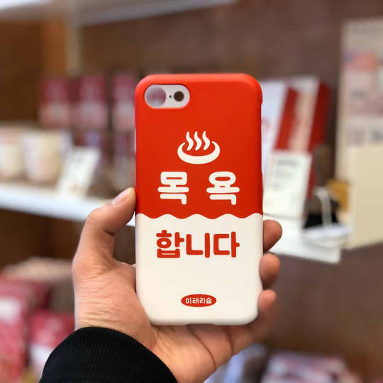 温泉マークが目を引くユニークなスマホカバー。こちらは10000ウォン(約1000円)。他には温泉マーク入りのグラスやマグカップ、さらには歯ブラシセットまでありました。日本にありそうでないデザインでインスタ映えもしそうです。