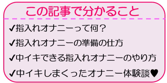 オナニー初心者はおもちゃにまだ抵抗がある方も多いですよね。その為、指でオナニーする方が多いと思います。私も最初は指入れオナニーでした。指入れオナニーでも、絶頂して中イキする方法を詳しく紹介致します。ぜひ試してみてください♪楽しいオナニータイムになりますよ♡