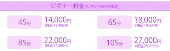 入店してから5日までは新人料金なので、なんと65分 18,000円(総額)でした。