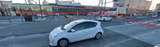 駅と道路を挟んだ向かいの道に行きたいので、駅を降りると駅を背にして左へ曲がります。