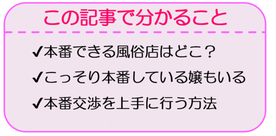 本番をしてくれるから指名するという意見のお客さんも少なくないので、固定客獲得の為には風俗嬢にとってデメリットだけではありません。