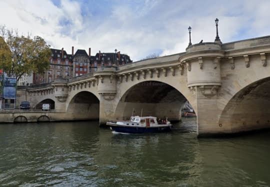 セーヌ川の中州のシテ島、芸術橋から見る先端のヴェールギャラン公園とポンヌフ橋です。Pont Neuf =新しい橋という名前は17世紀初めの完成時につけられたもの、今では反対にパリに現存する最古の橋であります。