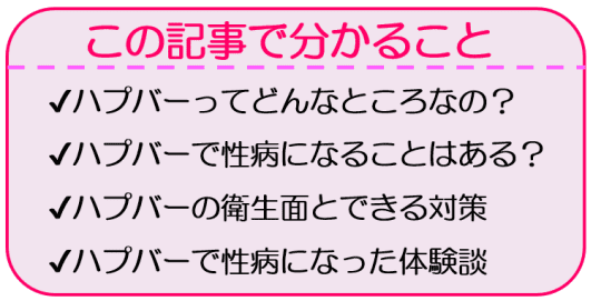 結論から言うと、ハプバーに遊びに行って性病にかかってしまう可能性はあります。