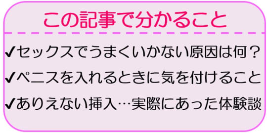 また、上手に入れられなかったことで余計に気分が落ち込み、セックスが上手くいかないと言う悪循環に陥る男性も多いのです。