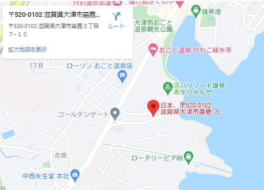 最寄りは「おごと温泉駅」になりますが、歩くと30分かかってしまいます。自家用車で行くかもしくは無料送迎を利用するようにしましょう。