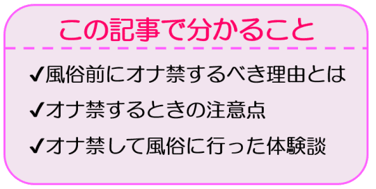 皆さんは損をしない為にも、風俗へ行くならオナ禁すべき理由を、しっかりと学んでいってください!