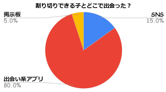 実際に、割り切りできる女の子と出会えたという25歳~40歳までの男性男性200人にネット上で「どの方法で出会たのか」というアンケートを取ってみました。