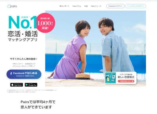 『Pairs(ペアーズ)』は、Facebookと連携させて異性を探せるマッチングサービスです。