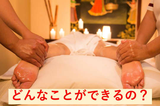 足先からゆっくりと身体の疲れている所をほぐしていきます。下半身を念入りにマッサージするんですが、鼠蹊部のリンパと睾丸マッサージが始まると痛みよりも「くすぐったい」と感じる方が多いようで、慣れてくると気持ち良くなりクセになるようです。