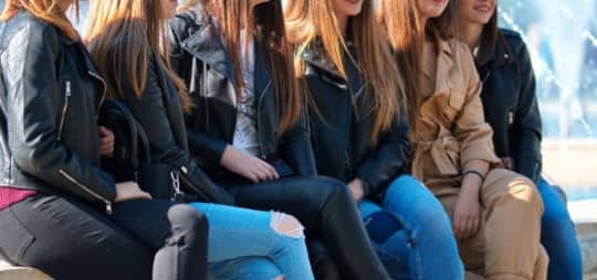茶髪の女の子が並ぶ写真から、巨乳の可愛いギャルを店員さんにお願いしました。