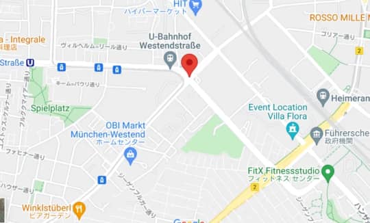 最寄り地下鉄駅「Westendstraße(ミュンヘン駅)」の場所は上の通り。