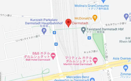 電車Sバーンの停留駅「Darmstadt駅」が、Sharksの最寄り駅となっているので、筆者も宿泊ホテルからここまで一旦向かい、その後タクシーに乗り換えて行きました。