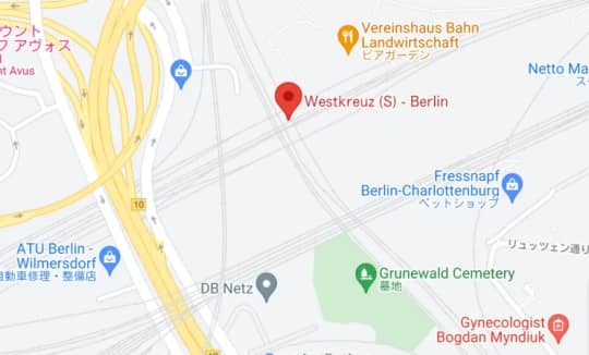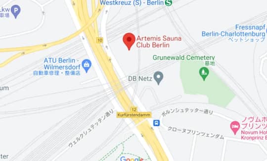 筆者のオススメは、電車Sバーンの「41・42号線、46号線、3号線、5号線、7号線」のいずれかを使って、Artemis Sauna Clubの最寄り駅「Westkreuz(ヴェストクロイツ駅)」で降りて、そのまま徒歩(10分 / 直線)で向かうというパターンです。