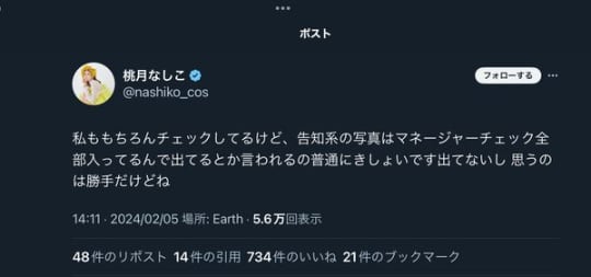 桃月なしこのエロ乳輪流出!?コメントに反論