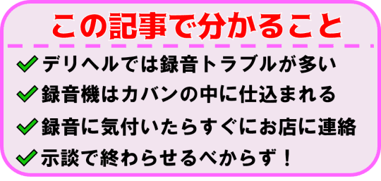 録音に限ったことではないのですが、デリヘルは箱ヘルよりもトラブルが起きやすいと思います。
