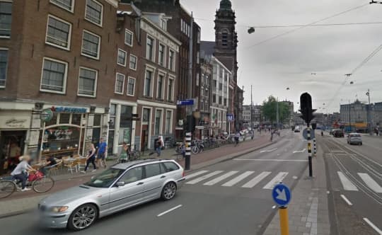 行き方としては、アムステルダム中央駅の南口を出て、ゲルダーセガテ通りを歩くと(徒歩約10分)右手にアジアンショップ(下ストリートビュー)が見えてくるので、そこを右に曲がり、川にぶつかるまで直進した後、もう一度左に曲がります。