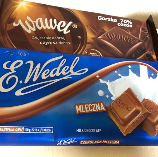 ポーランド生まれのおいしいチョコレートのヴェデル(Wedel)は、160年以上もの歴史があります。ポーランド人の国民的なチョコレートを代表するヴェデルにはたくさんのフレーバーがありスーパーの棚の一面を占めています。おすすめはキャラメル、ビスケット入りなどです。フルーツのフレーバーもたくさんあります。1枚100円以下でスーパー、コンビニで購入できます。
