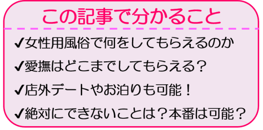 というわけで女性専用風俗ではどんなサービスを受けられるのか解説します。