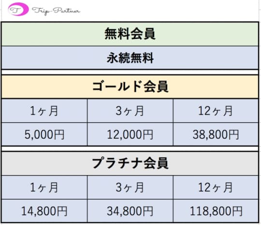 男性の会員には3つステージがあり、上記のような料金体系となっております。