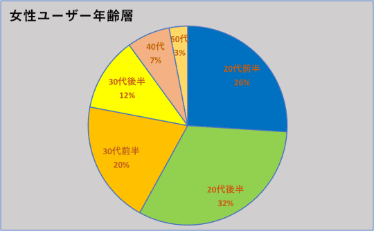 女性の登録年齢層で最も多い世代は20代~30代前半です。
